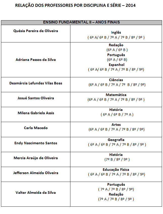 PROFESSORES ENSINO FUNDAMENTAL 2