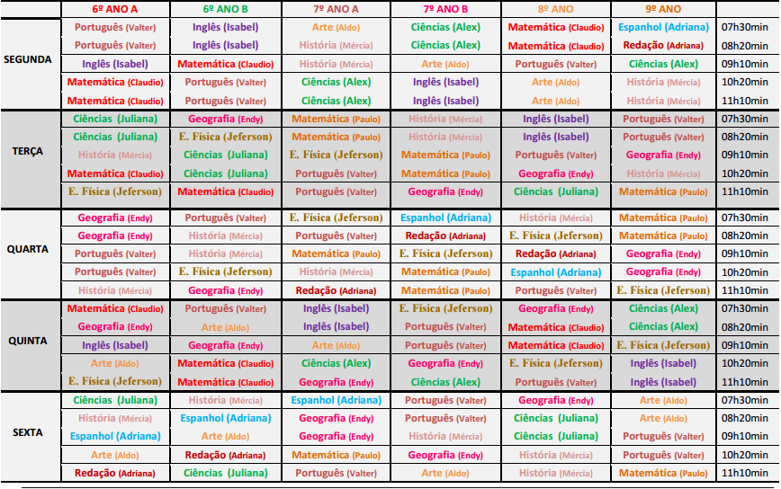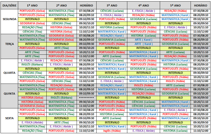 Horário EFAF 2017 O horário do intervalo será das 10h às 10h:20min